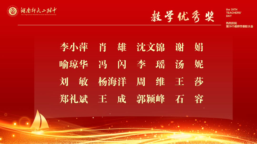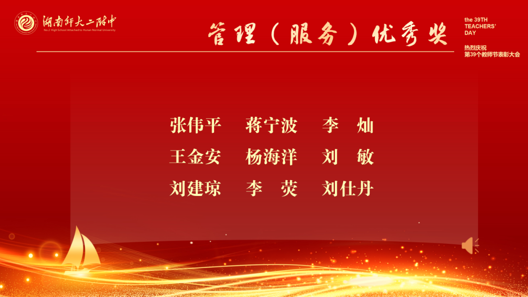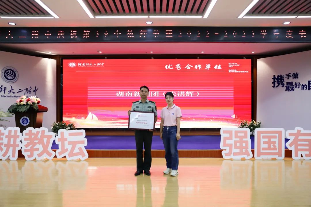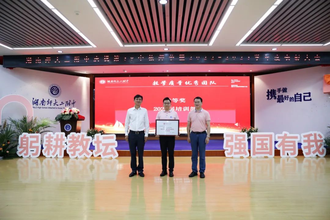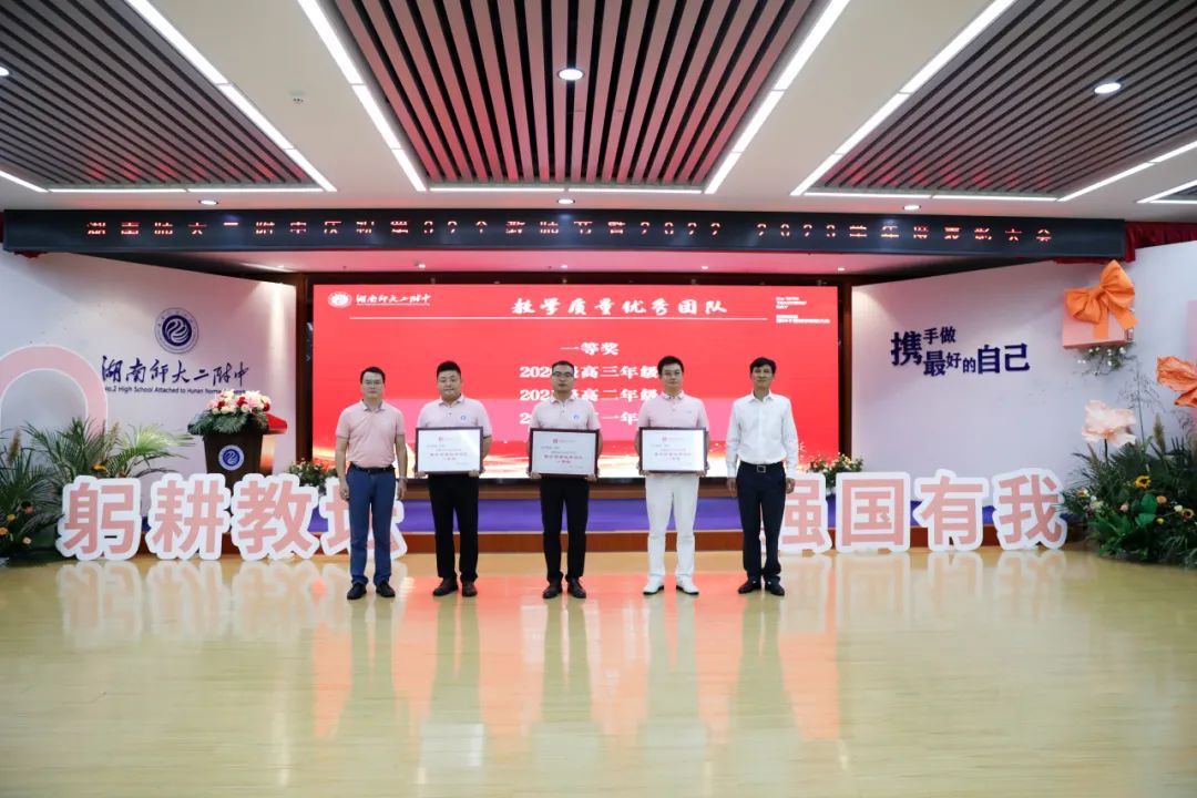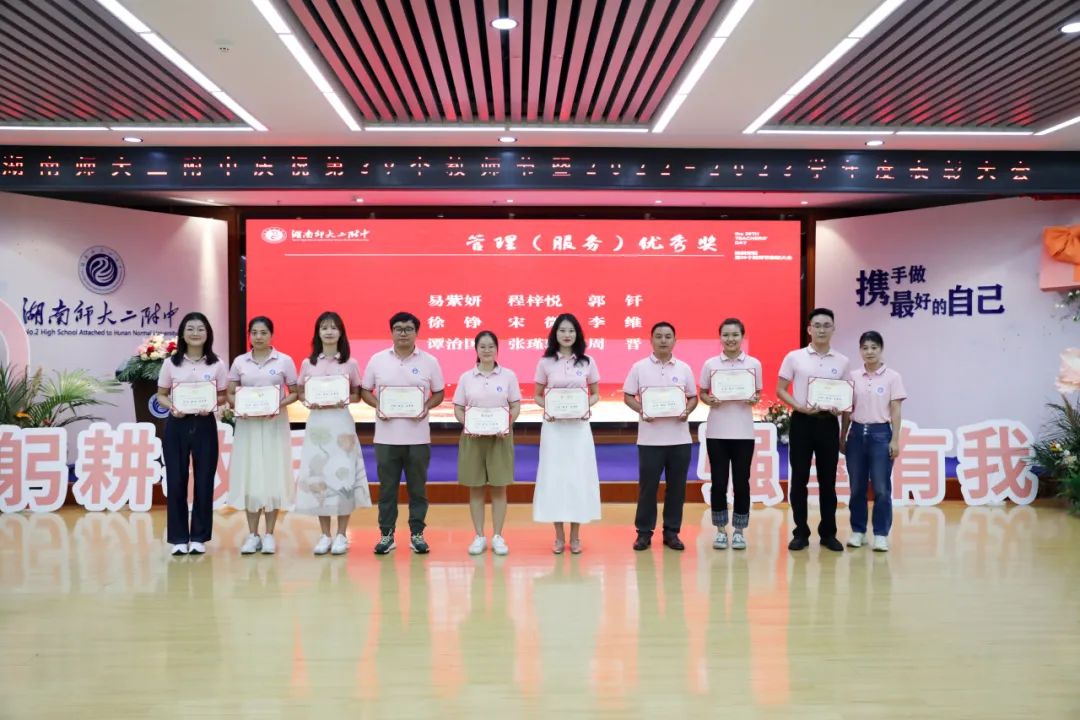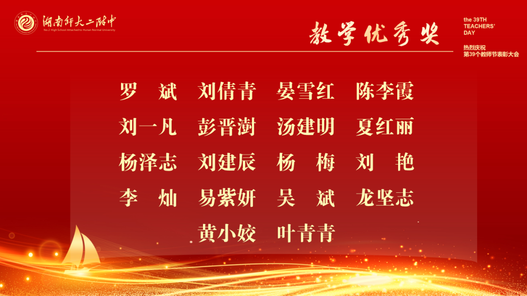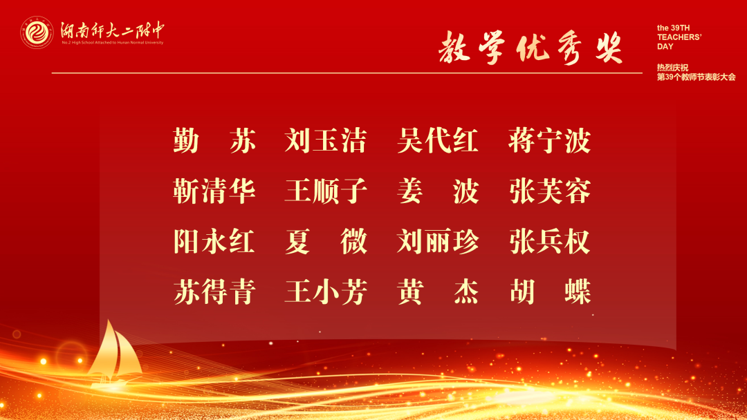 教坛耕耘志不渝,桃李芬芳又一年。9月9日下午,学校在格致楼八楼会议室举行庆祝第39个教师节暨2022-2023学年度表彰大会。湖南博纳教育集团董事长贺志力,二附中校长张胜利、校监张亚丽、副校长汪训贤、副校长张伟平出席本次大会。湘潭市博纳高级中学作为二附中同根同源的兄弟学校,执行校长田志刚、校长助理夏友才、校长助理李安定、校办主任姜美菊等领导受邀和学校全体教职工一同欢度教师佳节。