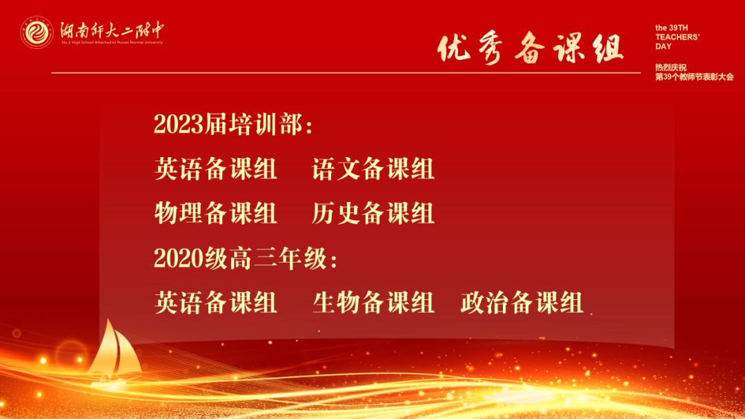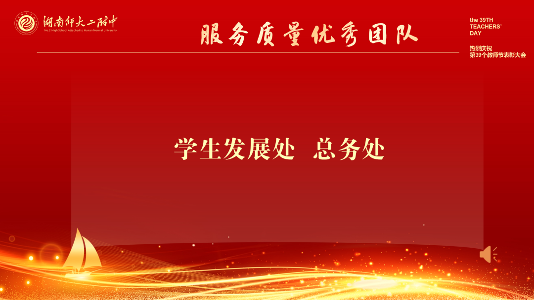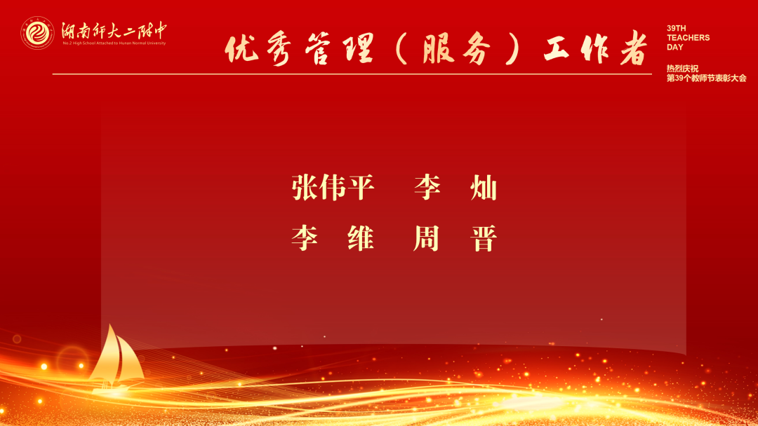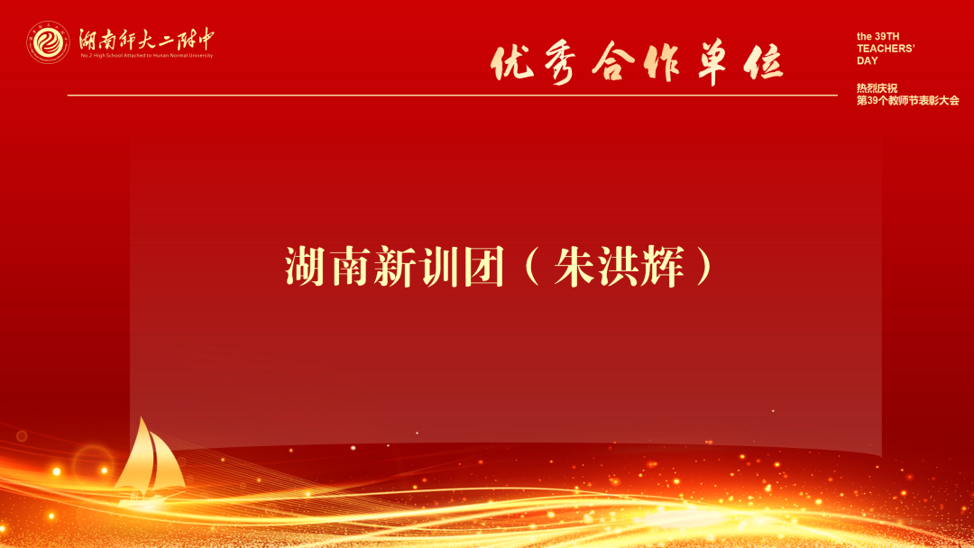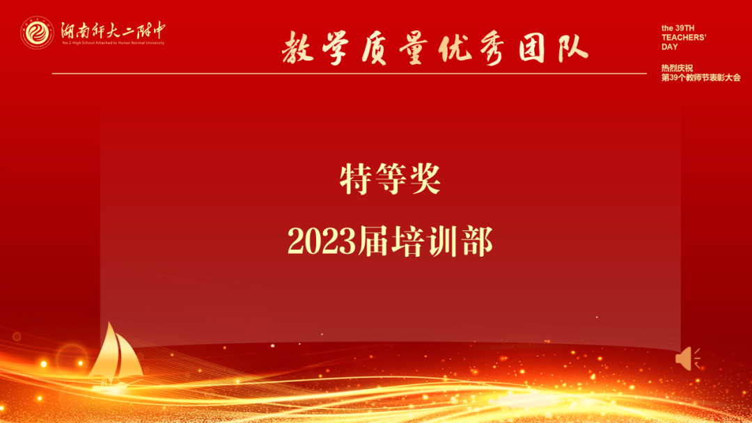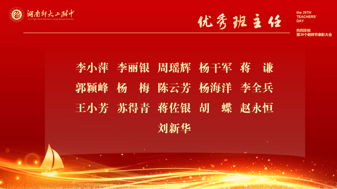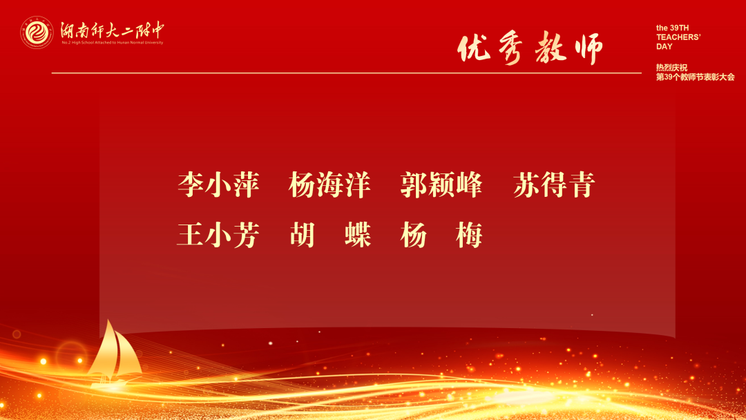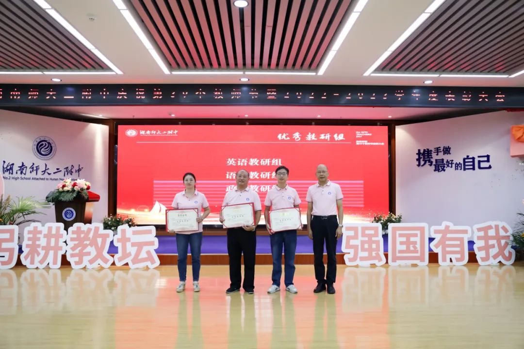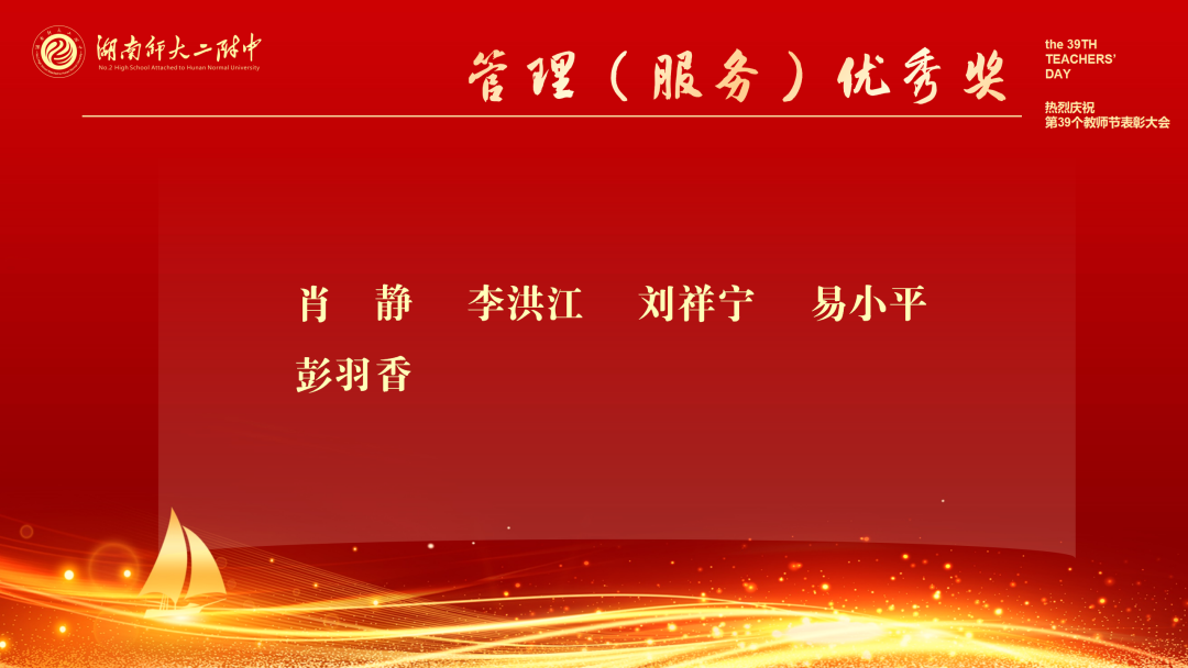 教坛耕耘志不渝,桃李芬芳又一年。9月9日下午,学校在格致楼八楼会议室举行庆祝第39个教师节暨2022-2023学年度表彰大会。湖南博纳教育集团董事长贺志力,二附中校长张胜利、校监张亚丽、副校长汪训贤、副校长张伟平出席本次大会。湘潭市博纳高级中学作为二附中同根同源的兄弟学校,执行校长田志刚、校长助理夏友才、校长助理李安定、校办主任姜美菊等领导受邀和学校全体教职工一同欢度教师佳节。