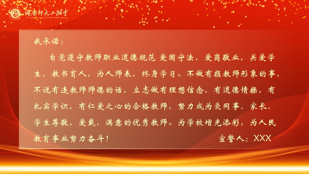 全体教职工郑重宣誓,也定会继承发扬老一辈教育工作者“捧着一颗心来,不带半根草去”的精神,以赤诚之心、奉献之心、仁爱之心投身教育事业,护航学生成长、成才。