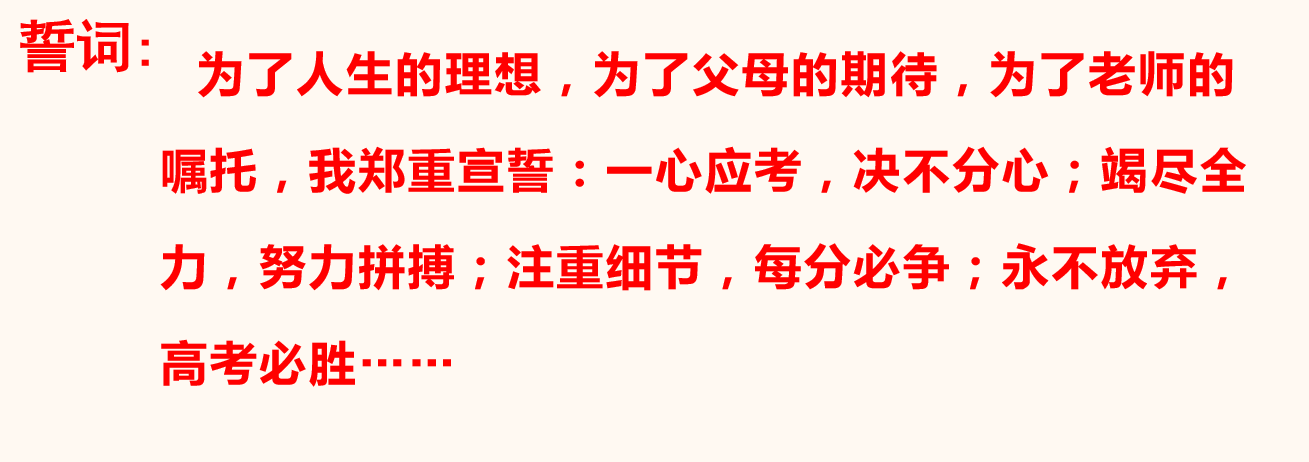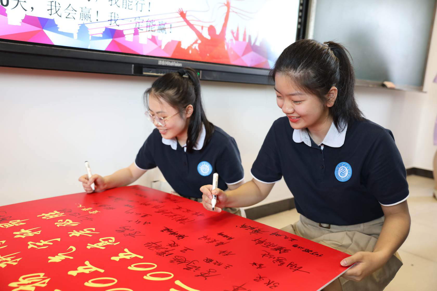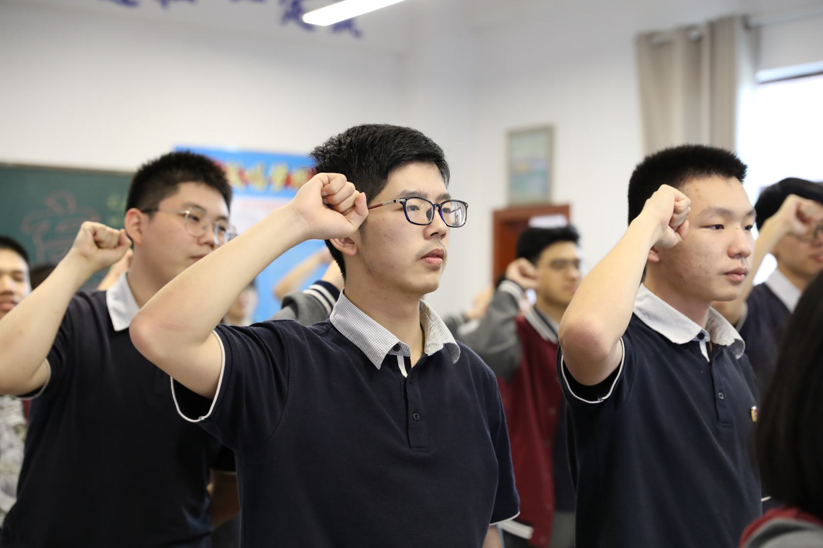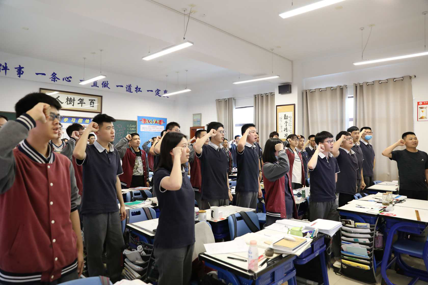 “为了人生的理想,为了父母的期待,为了老师的嘱托,我郑重宣誓:一心应考,决不分心;竭尽全力,努力拼搏;注重细节,每分必争;永不放弃,高考必胜……”距离2020届全国高考倒计时50天的5月18日班会课上,博纳楼传出了一阵阵铿锵有力的宣誓声。