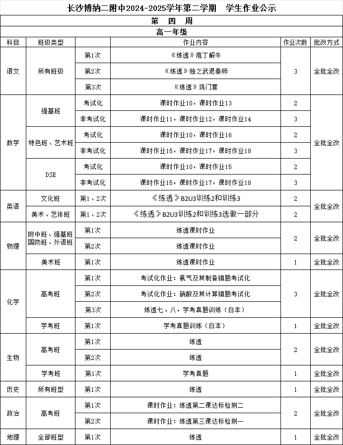 长沙博纳二附中2024-2025学年第二学期学生作业公示(第四周)