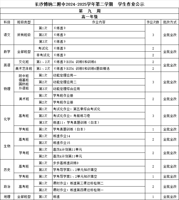 长沙博纳二附中2024-2025学年第二学期学生作业公示(第九周)