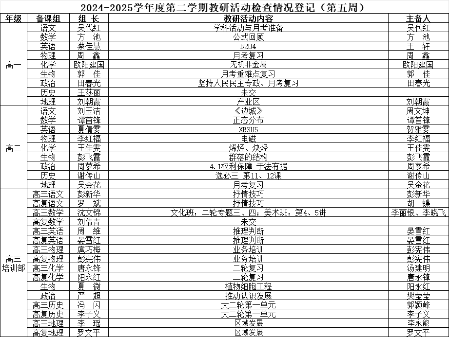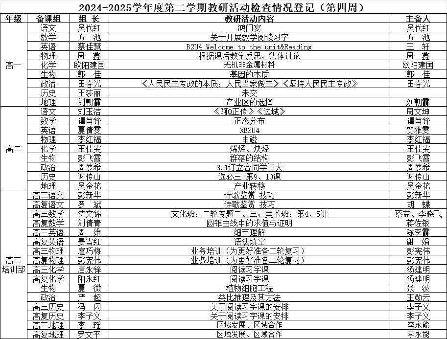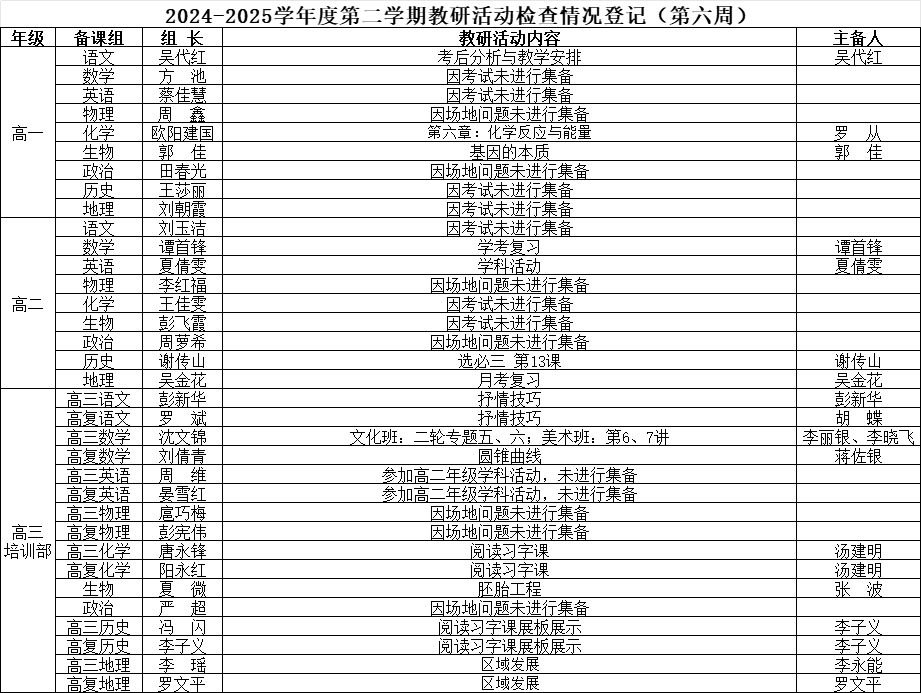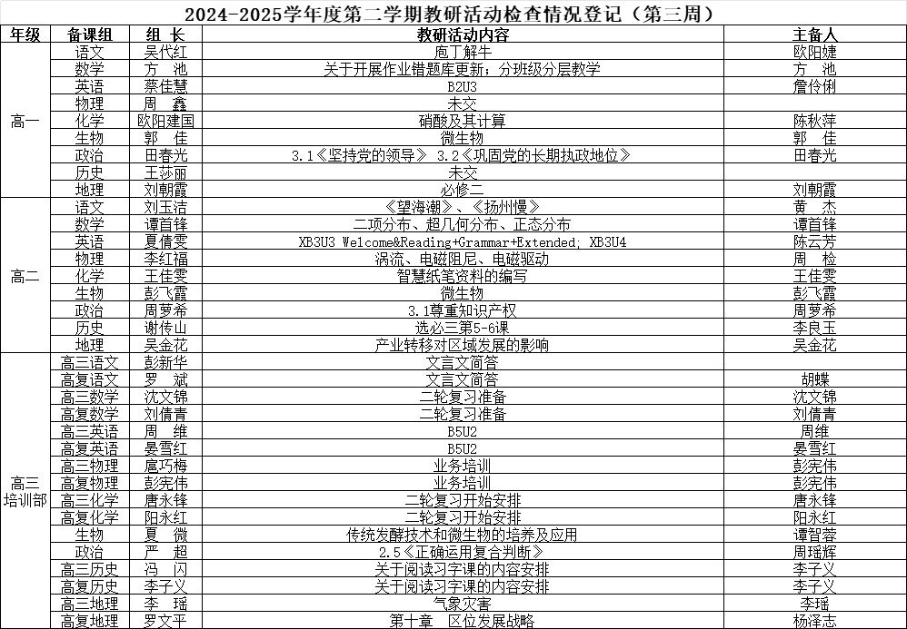 2024-2025学年度第二学期教研活动检查情况登记(第十周)
