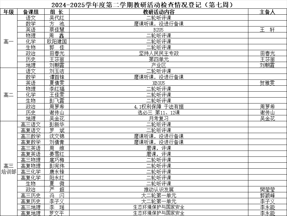 2024-2025学年度第二学期教研活动检查情况登记(第七周)