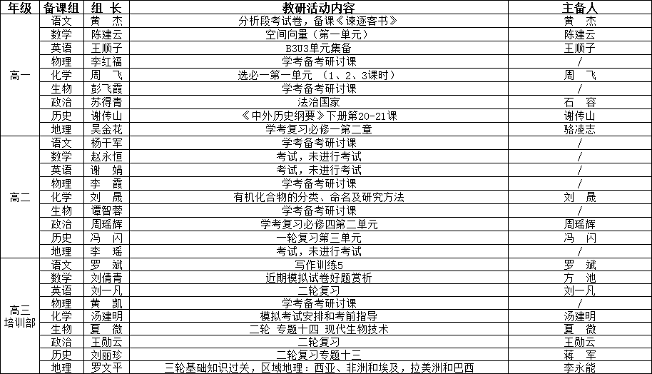 2024-2025学年度第二学期教研活动检查情况登记(第十一周)